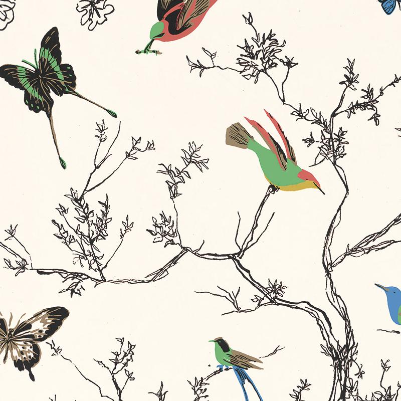 Schumacher Wallpaper BIRDS & BUTTERFLIES MULTI ON WHITE