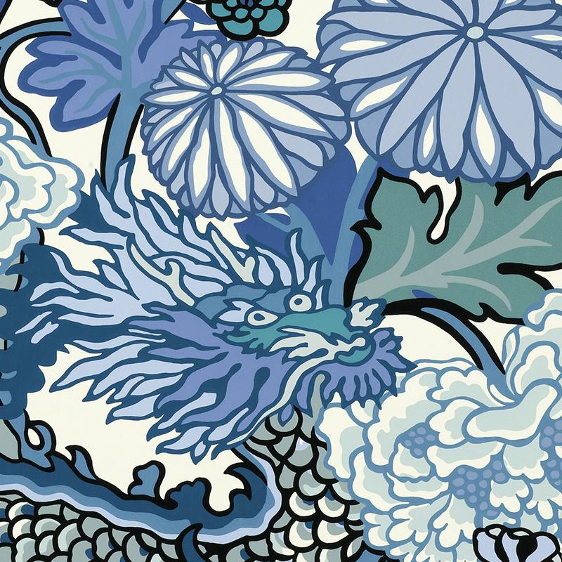 Schumacher Wallpaper CHIANG MAI DRAGON CHINA BLUE