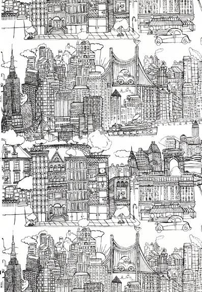 Schumacher Wallpaper NEW YORK NEW YORK BLACK ON WHITE