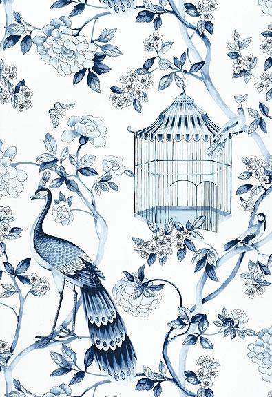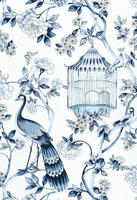 Schumacher Wallpaper OISEAUX ET FLEURS PORCELAIN