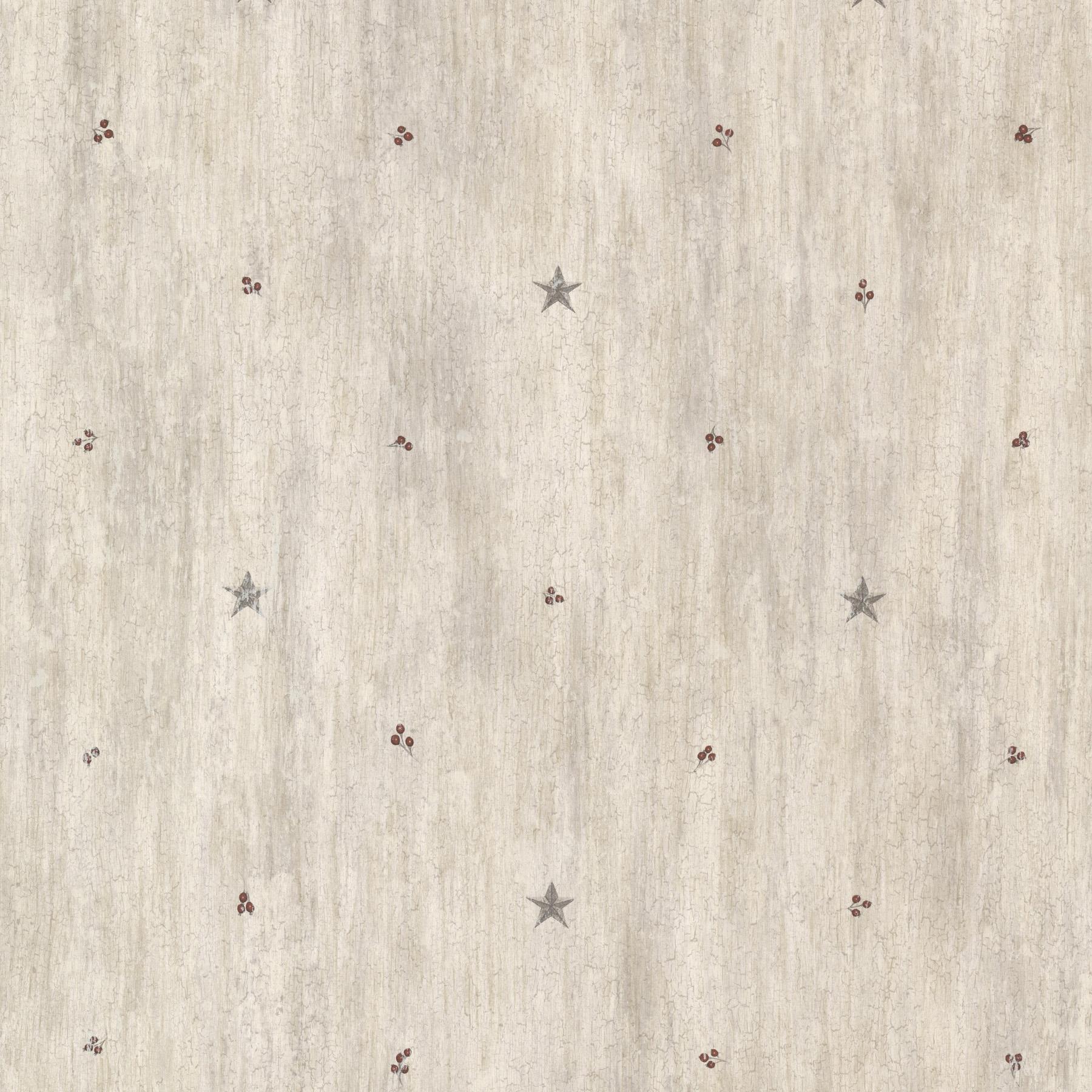 | Originally meant to represent the trademark of a specific barn builder barn stars add hip rustic detail to a room. With a mix of grey tin stars and luscious red berries this stone textured wallcovering is the epitome of country style. Page: 56 Match: Random Roll Width (in): 20.5 Roll Length (ft): 16.5 Prepasted Strippable |