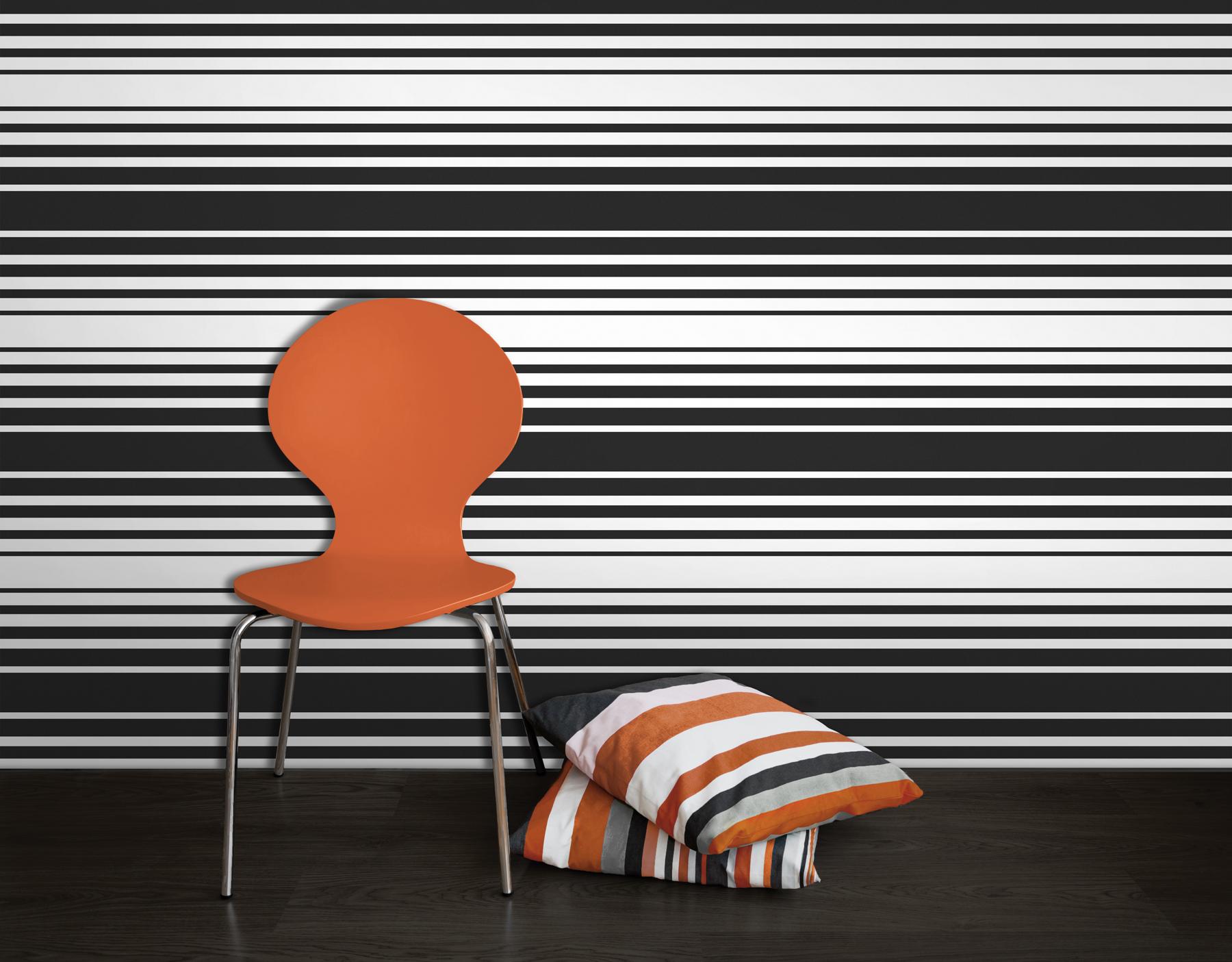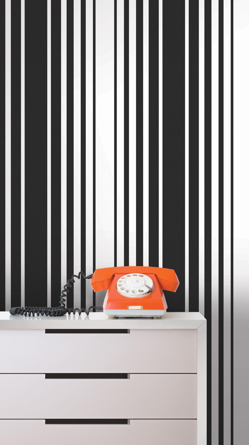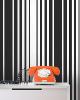 | Highly trendy this black and white stripe wallcovering adds current refinement to walls with a fabulous design coated in a unique suede effect. Page: 47 Match: Random Single Double Roll Width (in): 20.5 Single Double Roll Length (ft): 16.5 Unpasted Strippable |
