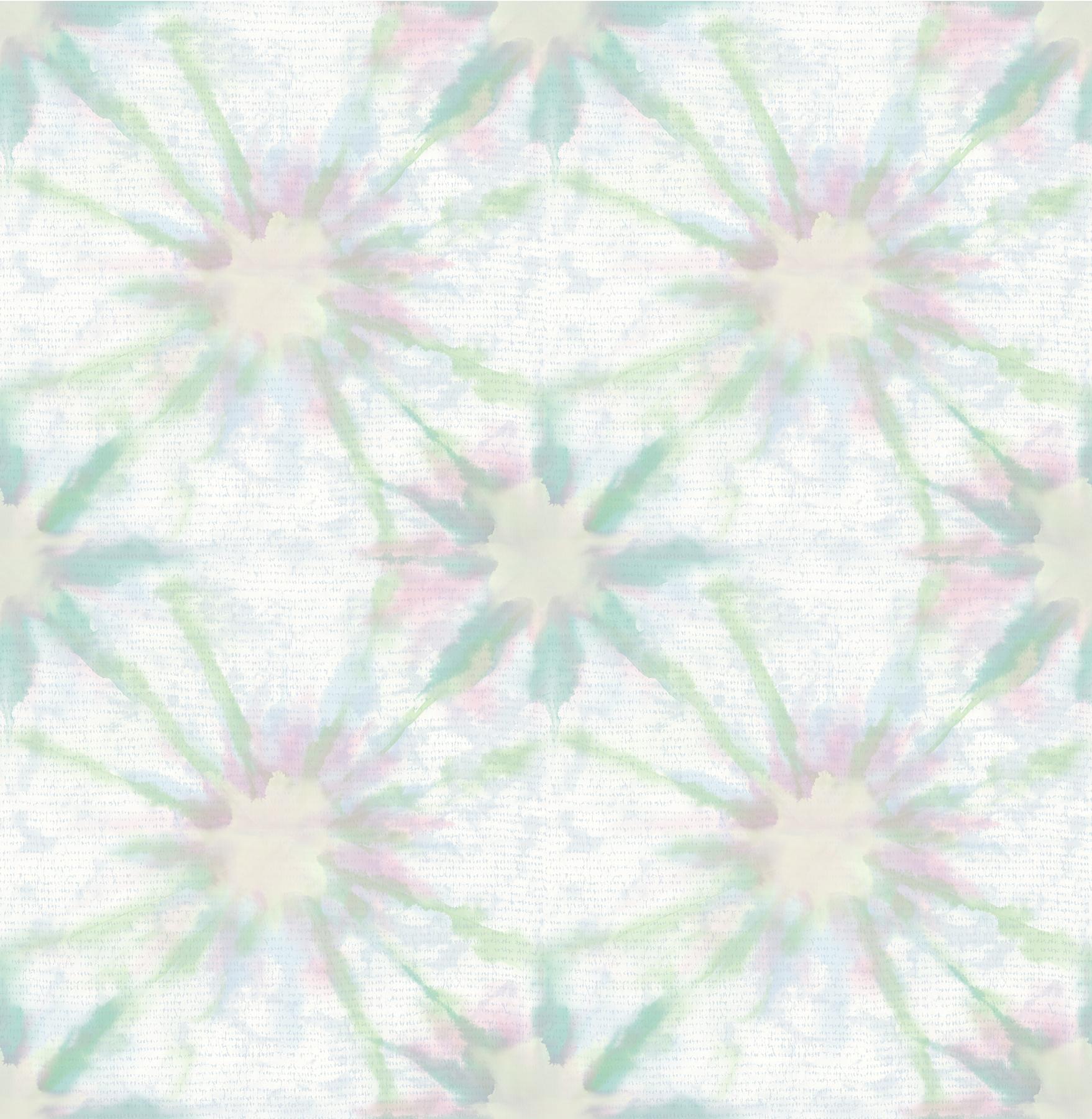 | With a lovely starburst shibori design this happy hip wallcovering makes a colorful look lovely pastels remake the look of a hand-dyed fabric spreading a free-spirited energy throughout your room. Page: 64 Match: Straight Roll Width (in): 20.5 Roll Length (ft): 16.5 Unpasted Strippable |