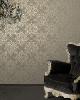 This opulent and cultured lace look is influenced by hip Victorian appliques and global medallions. With a timely cut-away design and layers of design this gold wallcovering uses texture and scale to make a graceful refinement on walls. Gravure Screen-p