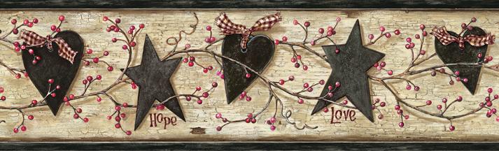 You will feel the embrace of faith hope and love with this darling heart star and berry twig border!
