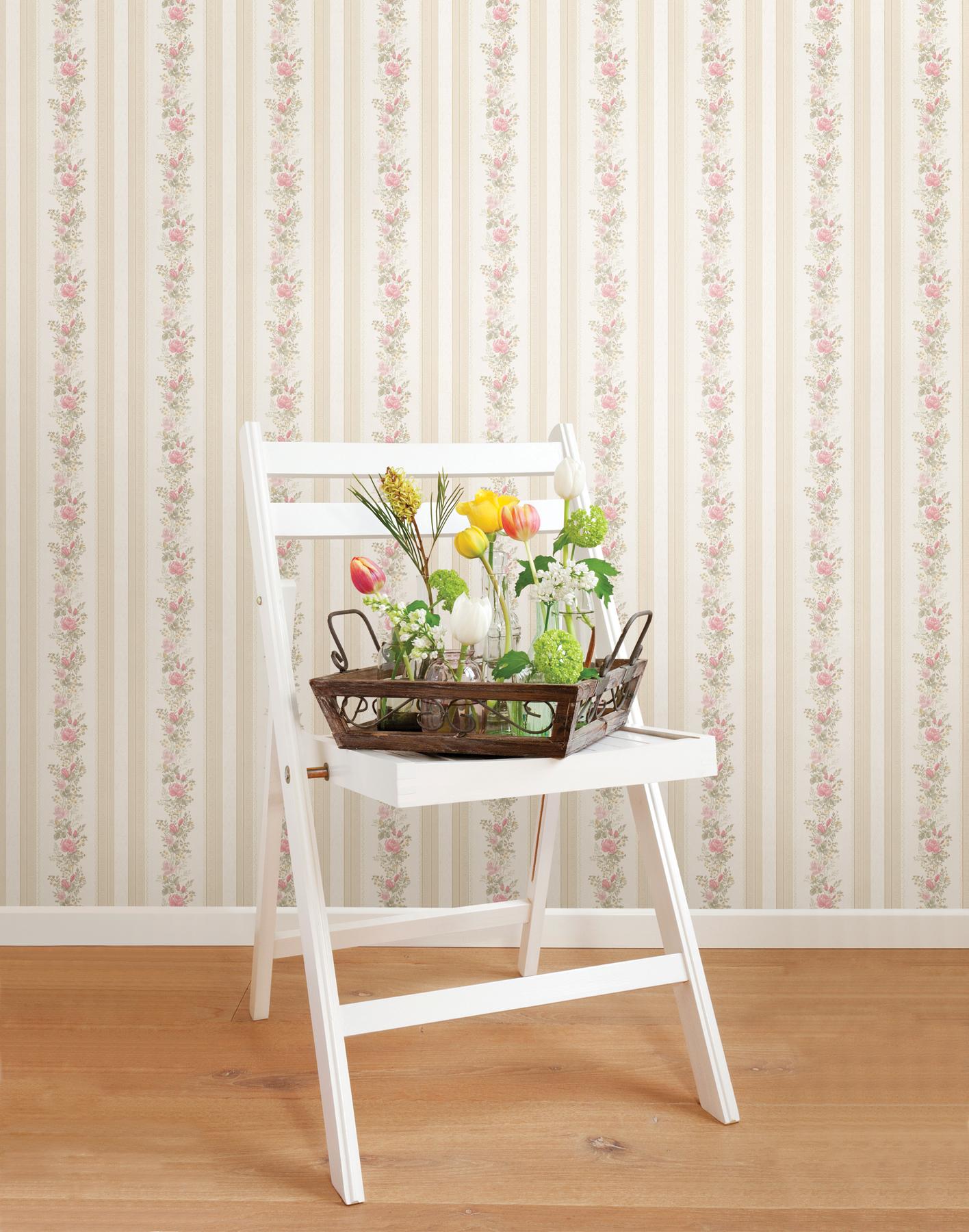 | A traditional rose stripe wallcovering with a design perhaps influenced by Laura Ashley. Soft neutrals and lovely pink all finished in a satin radiance. Match: Drop Single Roll Width (in): 20.5 Single Roll Length (ft): 16.5 Prepasted Peelable |