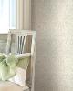 A scrolling paradise of blue and grey atop a gleaming organic canvas styles a perfectly serene damask on walls. A graceful current wallcovering dosed in a dash of cottage charm.