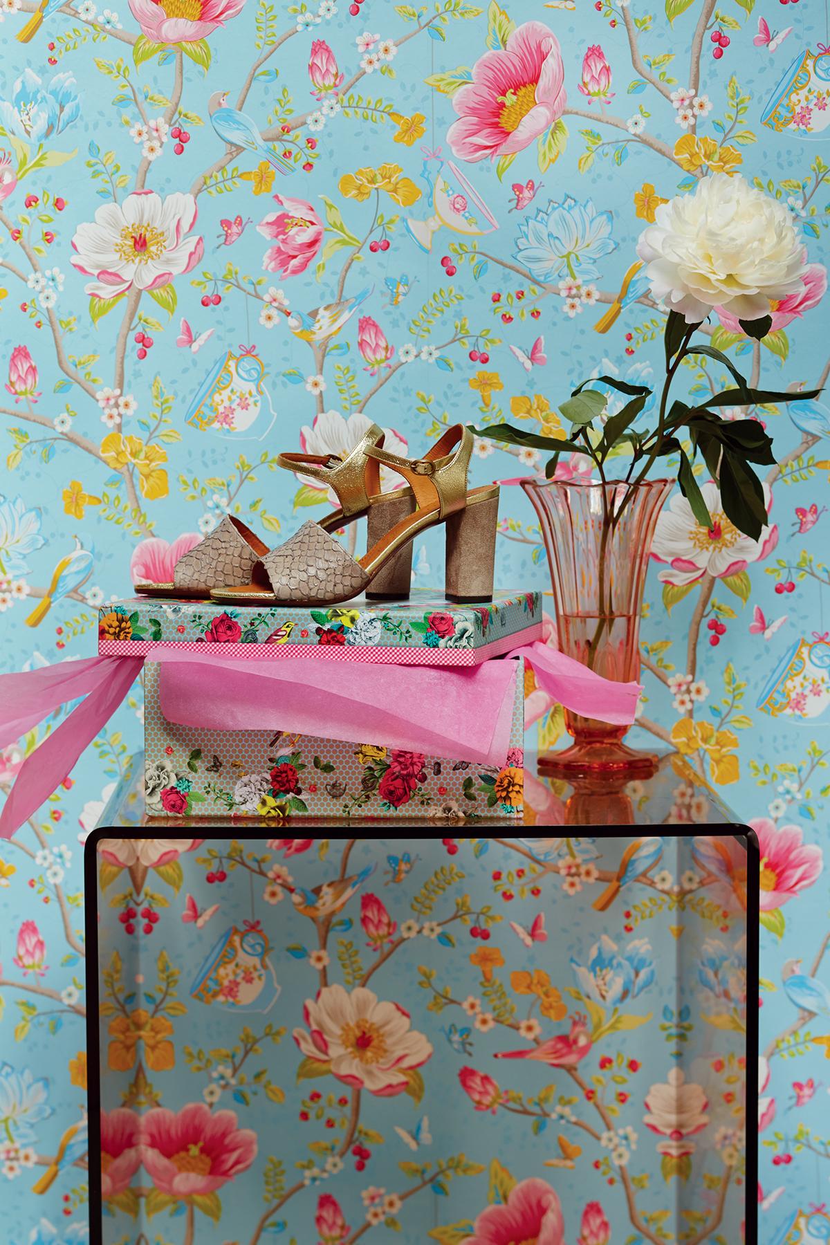 | Birds perched between a dreamy garden of florals and teacups has a new vintage vibe! make a room thats full of color and wonder with this fabulous wall covering by Eijffinger. Page: 3 Match: Drop Roll Width: 20.5 Roll Length: 16.5 Unpasted Strippable |