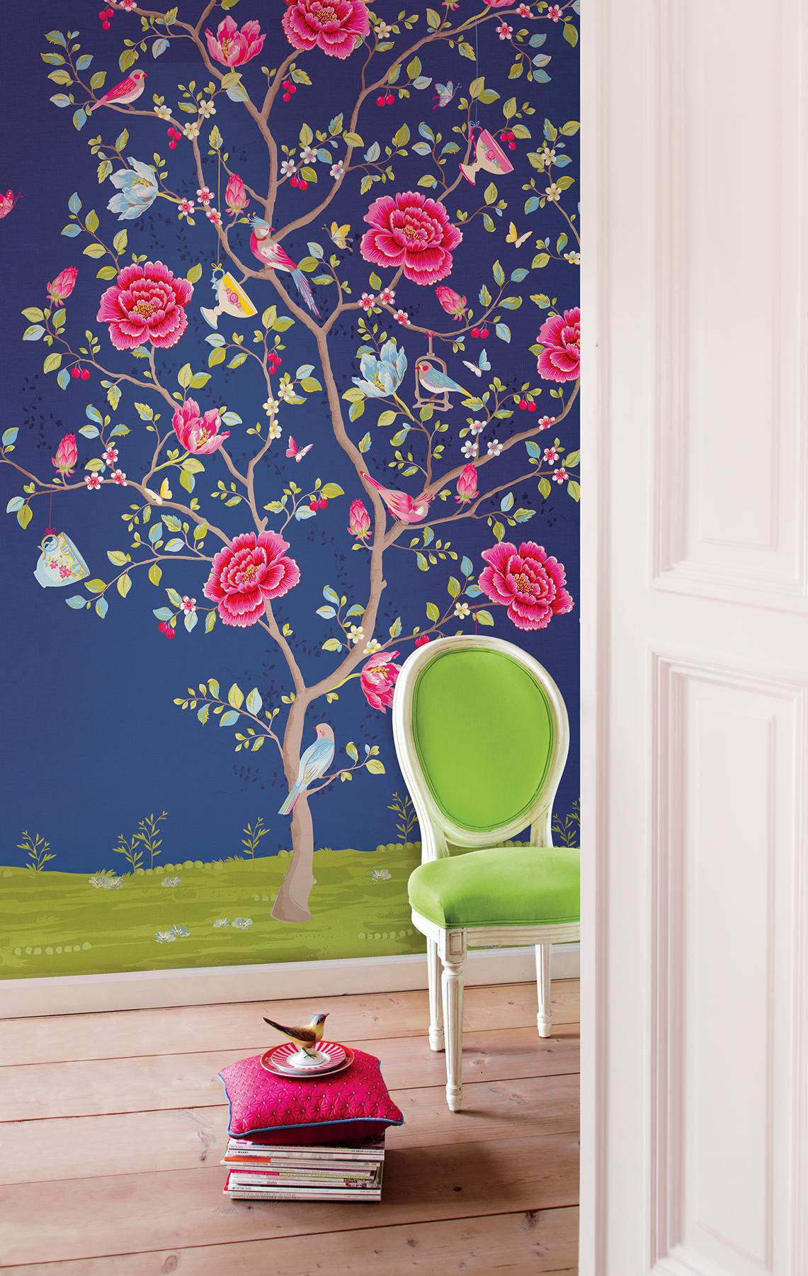 | Escape to a fairytale land with this enchanted tree mural. Styled atop a hip blue landscape, a dazzling mix of florals and birds, butterflies and teacups, make an effortless backdrop for your room. Comes in four panels that assemble into a 6 1 x 9 2 Page: 85 Match: NA Roll Width: 73 Roll Length: 9.2 Unpasted Strippable |