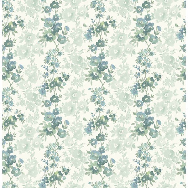 Brewster Wallcovering Charlise Teal Floral Stripe
