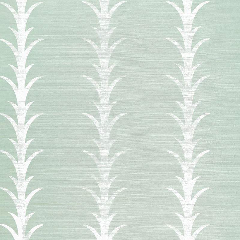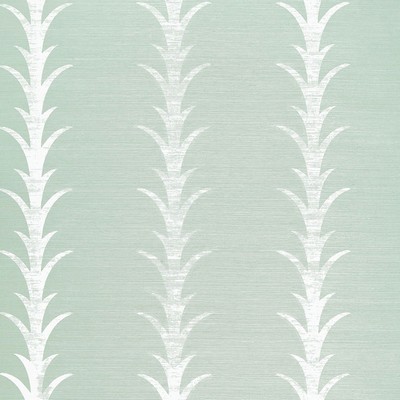 Schumacher Wallpaper Acanthus Stripe Sisal Seaglass and Chalk