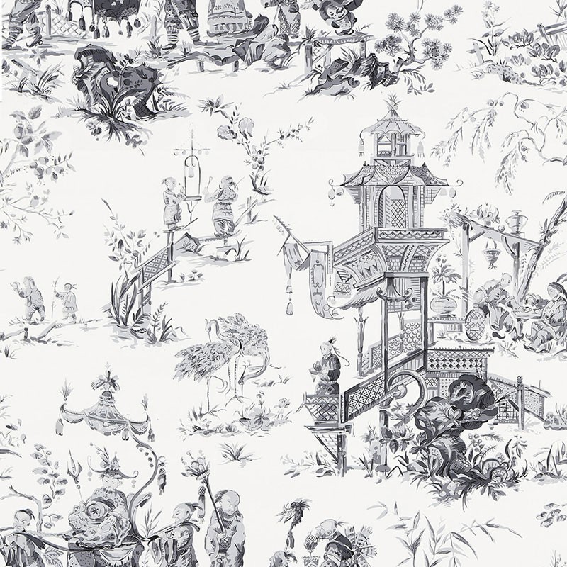 | Grey Toile Asian And Oriental |