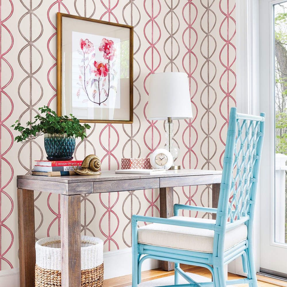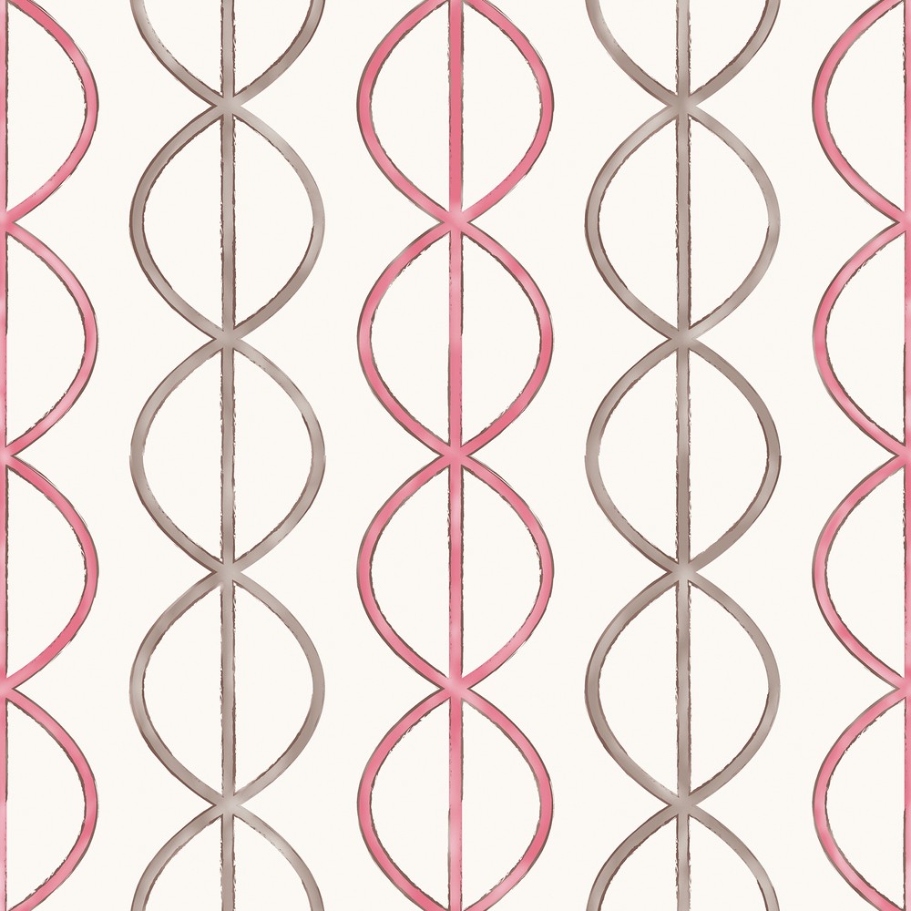 | Pink and brown are a classic color combination, but you havent seen them like this before. Ribbons of color lace together creating a crisp geometric design that is accented by a watercolor effect. Page: 59 Match: Straight Roll Width (in): 20.5 Roll Length (ft): 33 Unpasted Strippable |