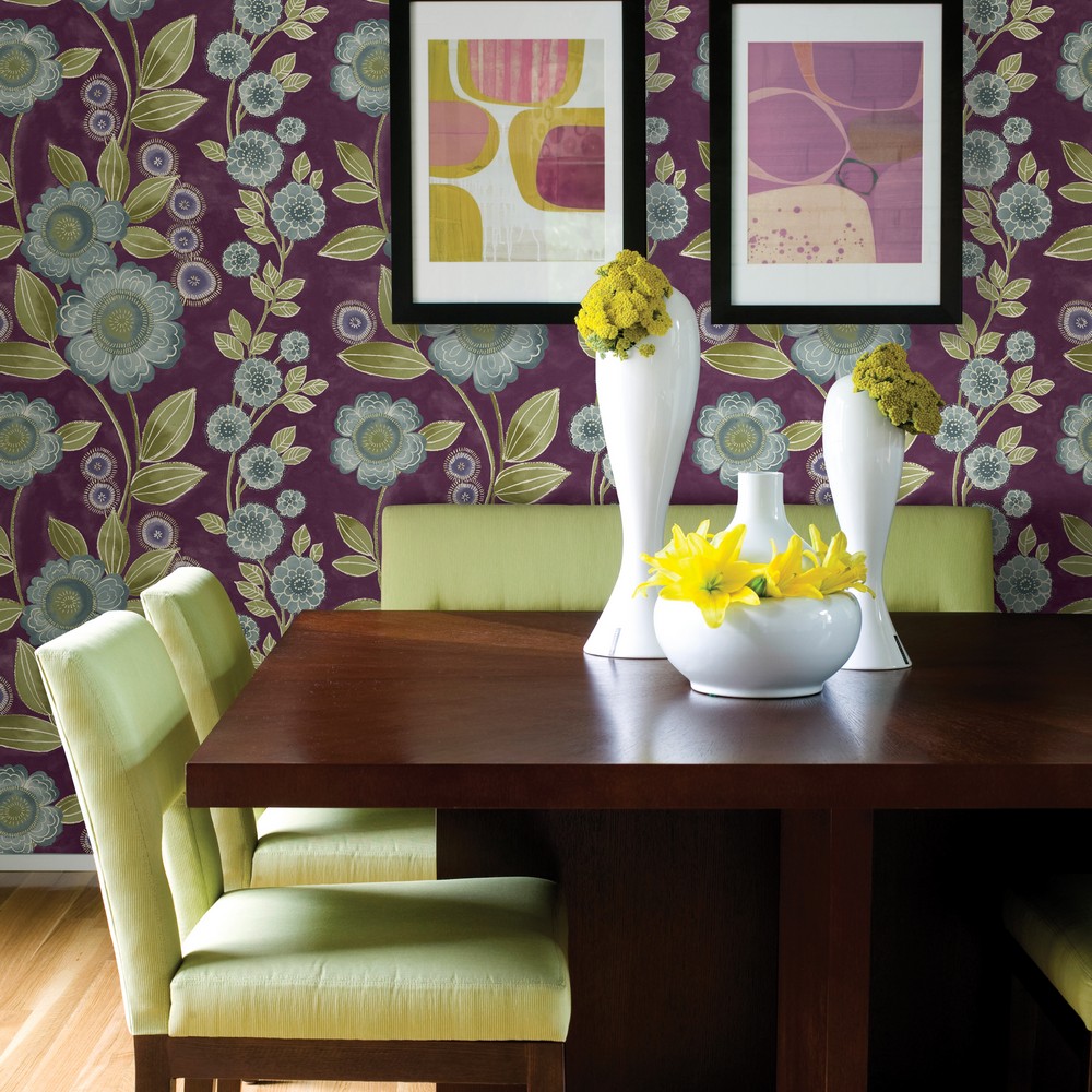Brewster Wallcovering Bloom Plum Floral Wallpaper