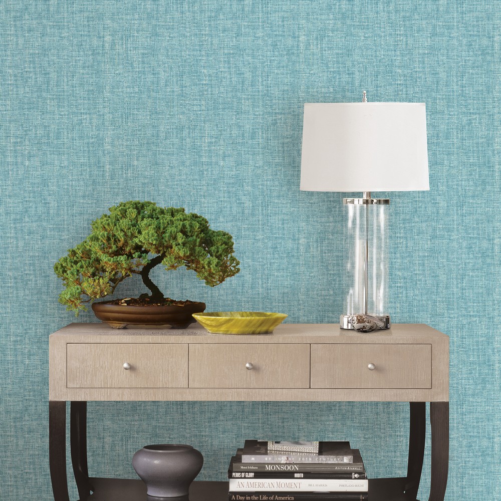 Brewster Wallcovering  Oasis Turquoise Linen Wallpaper
