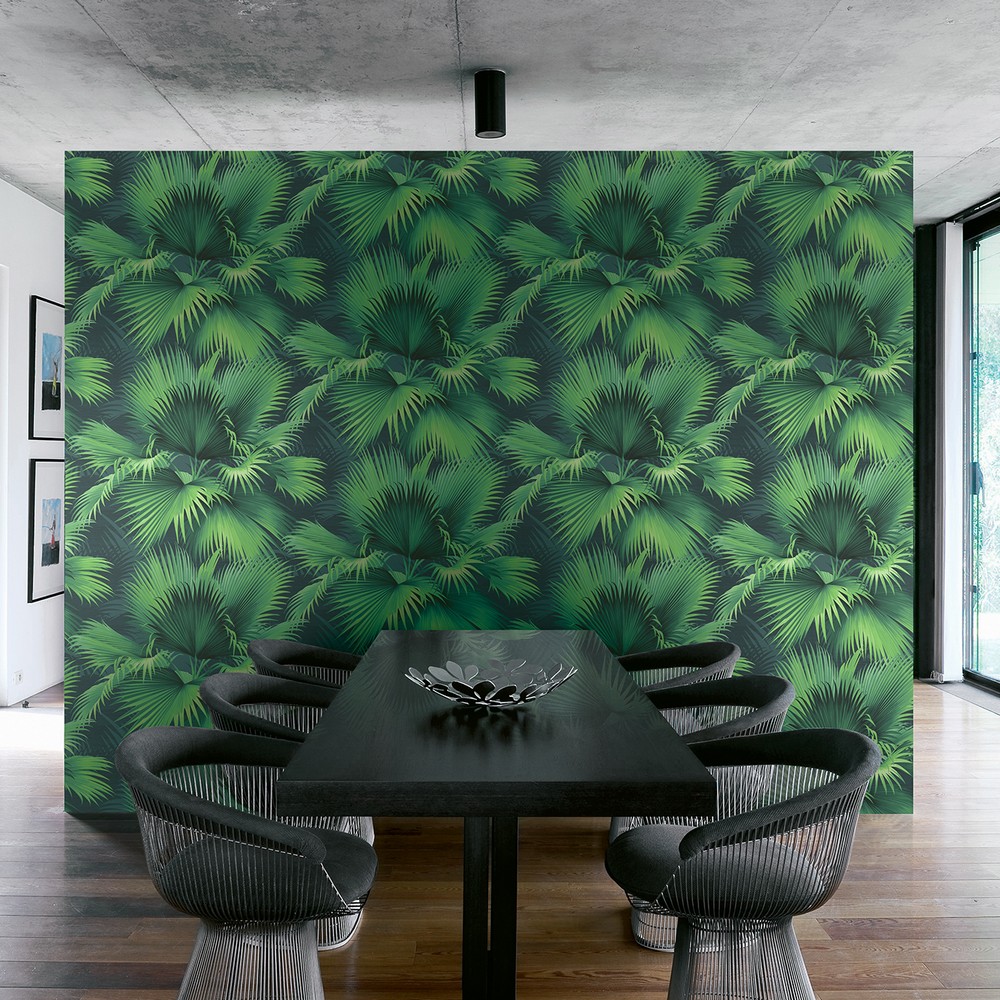 Give your walls a stylish makeover with this on-trend palm leaf wallpaper. The deep forest green fades to a lush lime. The large scale print is perfect for a feature wall.