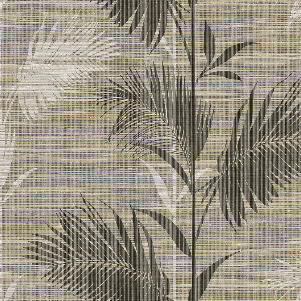 | Add a tropical style to your home décor with this palm print wallpaper. The brown colorway has a natural look with a faux grasscloth print. Thin white strings add a dimensional finish Page: 4 Match: Drop Roll Width (in): 27 Roll Length (ft): 27 Unpasted Strippable Book: Kenneth James Palm Springs |
