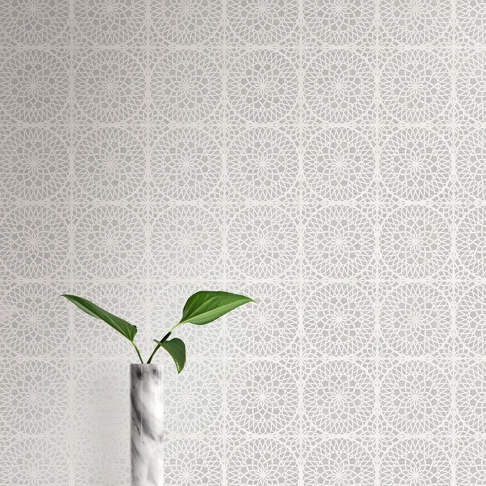 | Give your walls an intricate finish with this medallion wallpaper. With the look of an antique wood carving, this design is a modern take on classic design. Hundreds of lined intersect to create the stunning pattern. Page: 12 Match: Straight Roll Width (in): 20.5 Roll Length (ft): 33 Unpasted Strippable Book: Kenneth James Palm Springs Ethnic And Global |