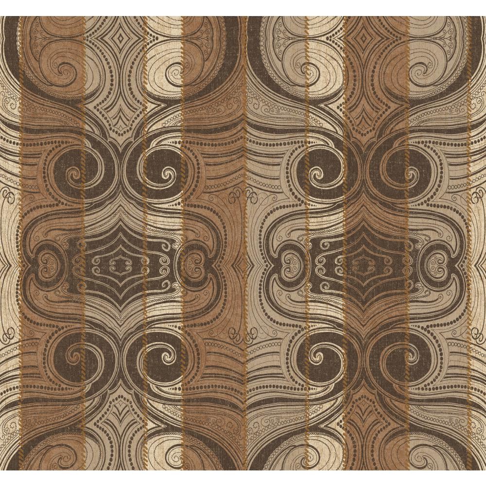 | Regard the innovative pairing of ornate design plus mock stitching, which delineates stripes in varied widths and colors. The handsome large scale pattern possesses the visual characteristics of time-worn fabric, while the scrolling lines mirror one anoth Carey Lind Match: Straight Prepasted - Washable - Strippable Contemporary Double Roll Dimensions 27 in. x 27ft. = 60.75 sq.ft |