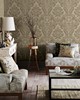 Brewster Wallcovering Shadow Khaki Damask Wallpaper