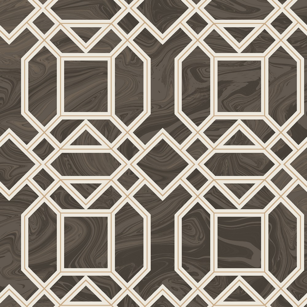 | Gold and white trellis wallpaper on a swriled, marble brown background. A-Street Prints Page: 63 Match: Drop Unpasted Geometric Strippable A-Street Prints Moonlight Wallcoverings Book # 2763 Double Double Roll Width: 20.5 in Double Double Roll Length: 33 ft Wallpaper Colors: Browns Modern Geometric Wallpaper for Walls |