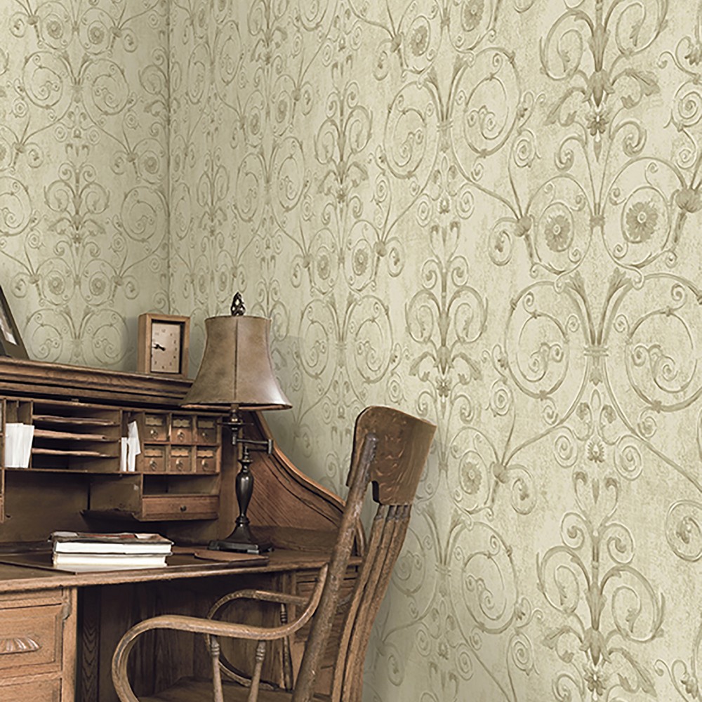 | Classic scroll wall covering. Brewster Page: 47 Match: Straight Unpasted Scrolls Strippable Brewster University of Oxford Wallcoverings Book # 2791 Double Double Roll Width: 20.5 in Double Double Roll Length: 33 ft Wallpaper Colors: Neutrals Traditional Scrolls Wallpaper for Walls |