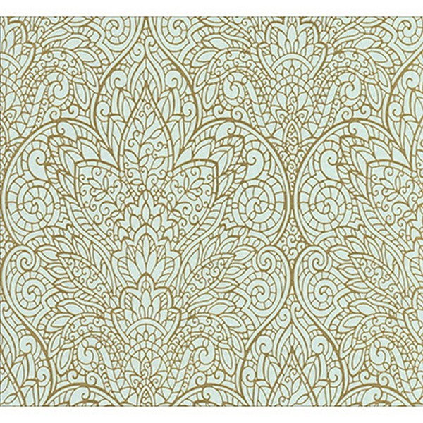 | Kravet Wallcoverings Candice Olson Collection damask Metallic Print Grasscloth Pretrimmed light Blue And Gold Wallpaper Priced and sold by the roll of 11 Yards Up the bolt |