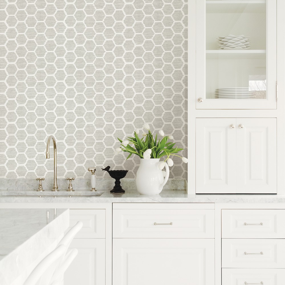 Brewster Wallcovering  Aura Platinum Honeycomb Wallpaper