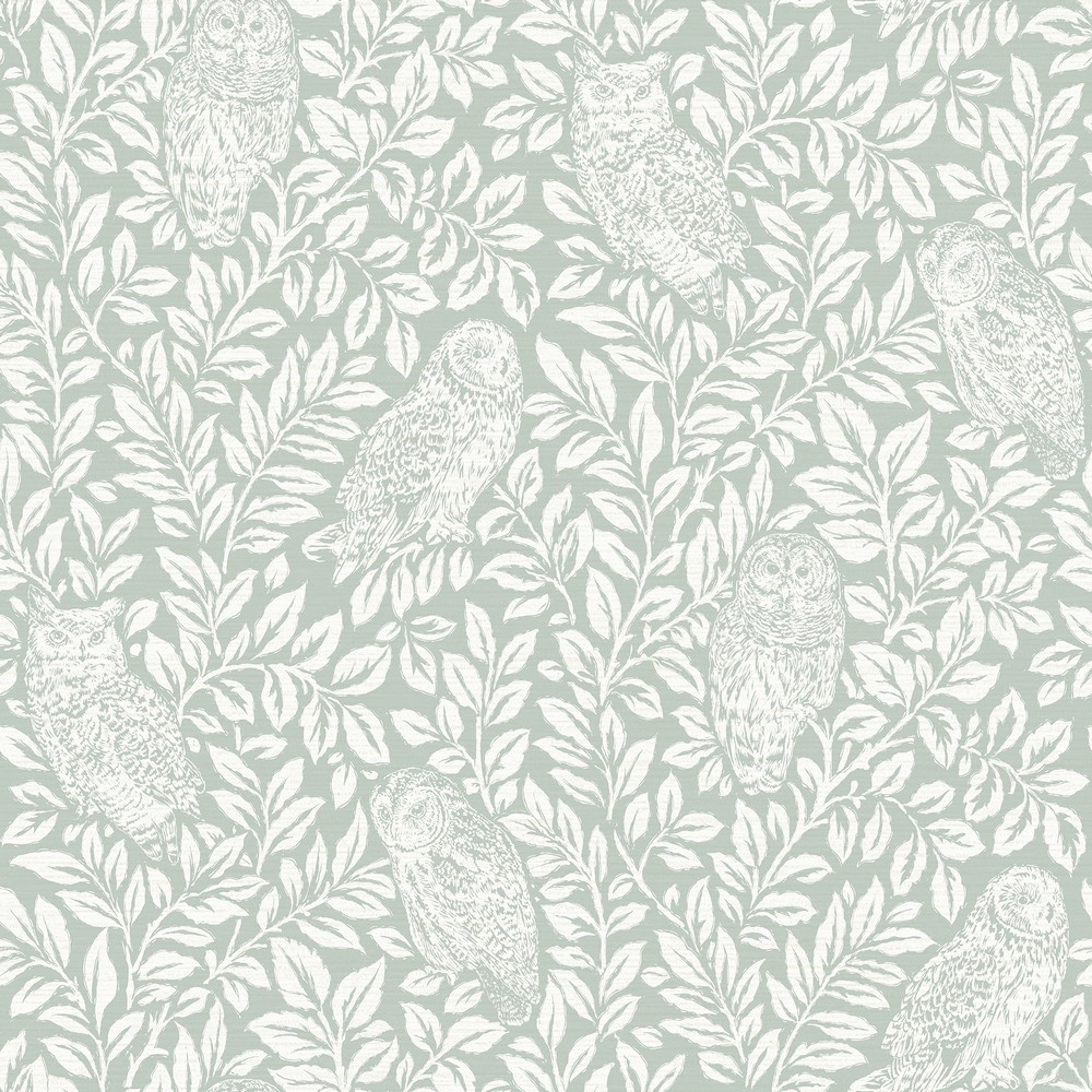 Brewster Wallcovering  Parliament Teal Owl Wallpaper