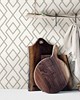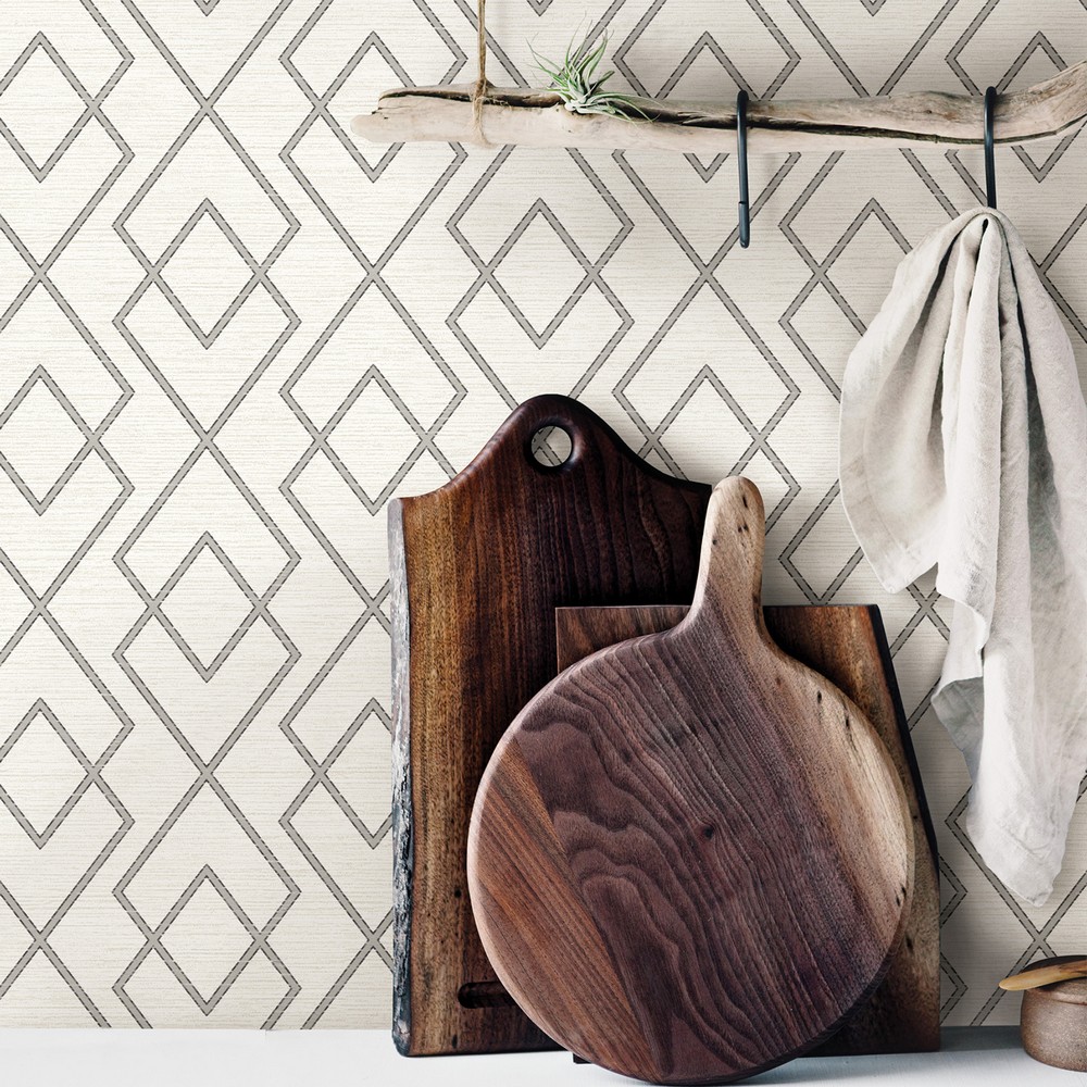 | Outlined with a black hue, this taupe trellis design pops against a cream background. With a soft distressed look, this wall covering has a shabby hip style. Blaze is a prepasted, coated heavyweight paper wall covering. Chesapeake Page: 2 Match: Straight Double Roll Width (inches): 20.5 Double Roll Length (feet): 33 Prepasted Trellis Strippable Diamonds And Ogee |