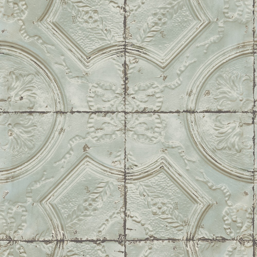 Brewster Wallcovering Deerfield Teal Vintage Tin Tile Wallpaper