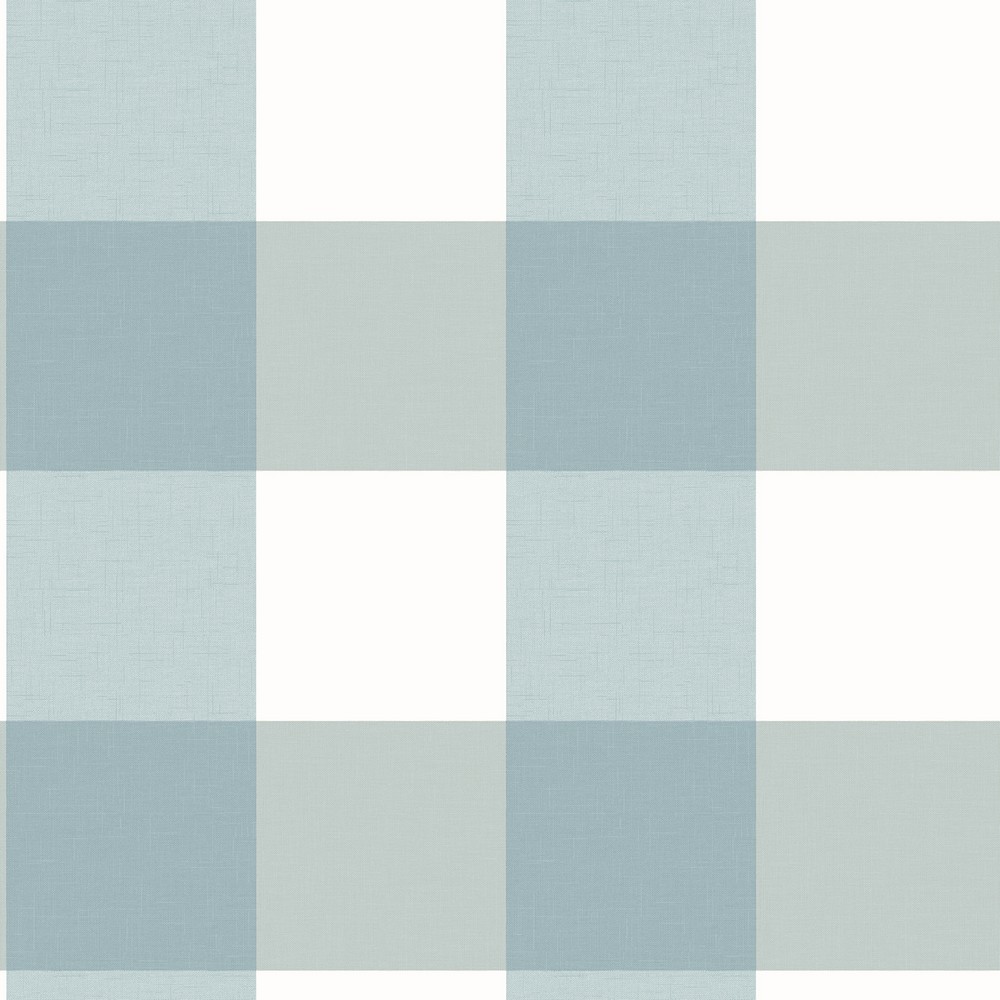 Made to resemble fabric, this gingham wall covering has subtly distressed details. Its alluring teal, grey and white large scale design gives it a new feel. Selah is a prepasted, coated heavyweight paper wall covering.