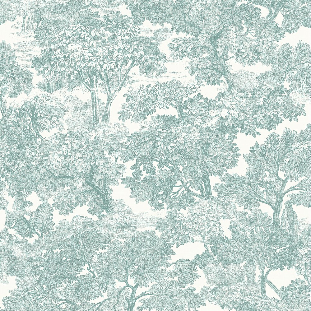 Brewster Wallcovering Spinney Teal Toile Wallpaper
