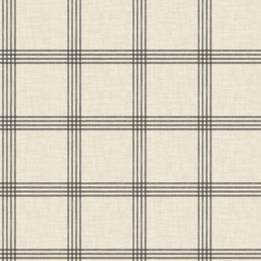 | Resembling linen, this plaid wall covering has a classic farmhouse style. Its black design pops against a beige background, giving this wall covering a eye-catching look. Ester is a prepasted, non woven wall covering. Chesapeake Page: 45 Match: Straight Double Roll Width (inches): 20.5 Double Roll Length (feet): 33 Prepasted Plaids Strippable Plaid |