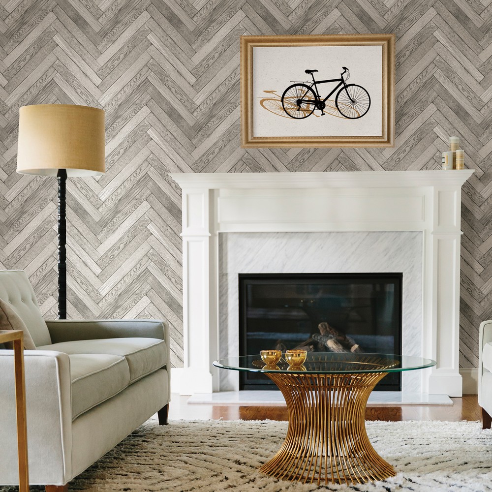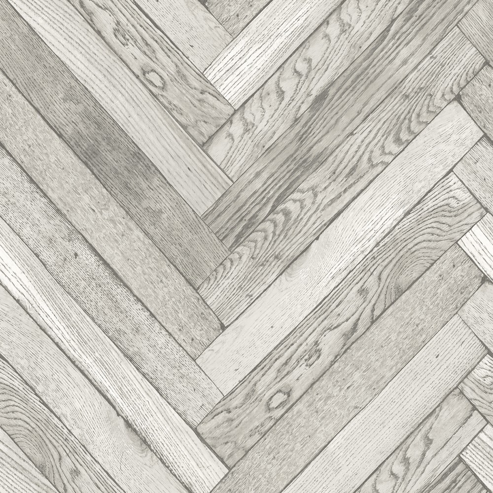 | A dynamic herringbone faux wood wall covering is perfect for the customer in need of an intricate wood work feature for their wall. The light gray wood is clean and current. Brewster Page: 36 Match: Straight Double Roll Width (inches): 20.5 Double Roll Length (feet): 33 Unpasted Wood Paneling Strippable Wood Wallpaper |
