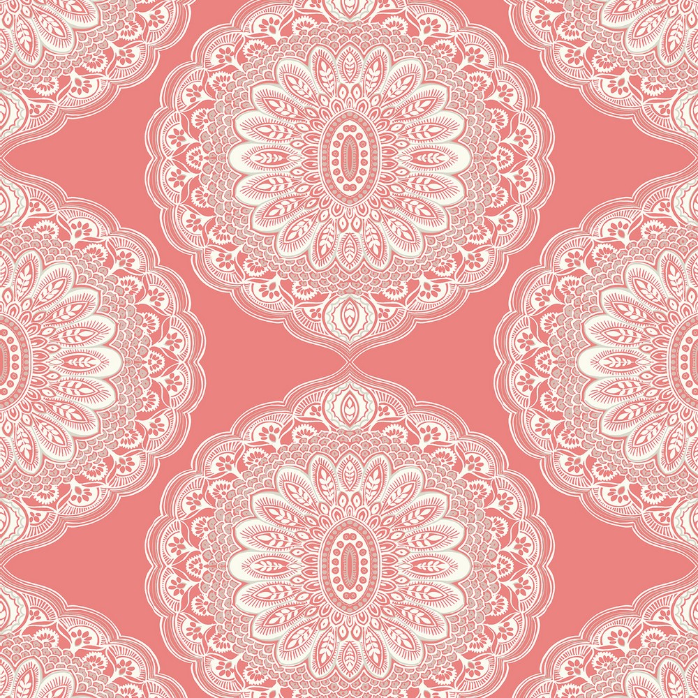 Brewster Wallcovering Bolinas Coral Medallion Wallpaper Coral