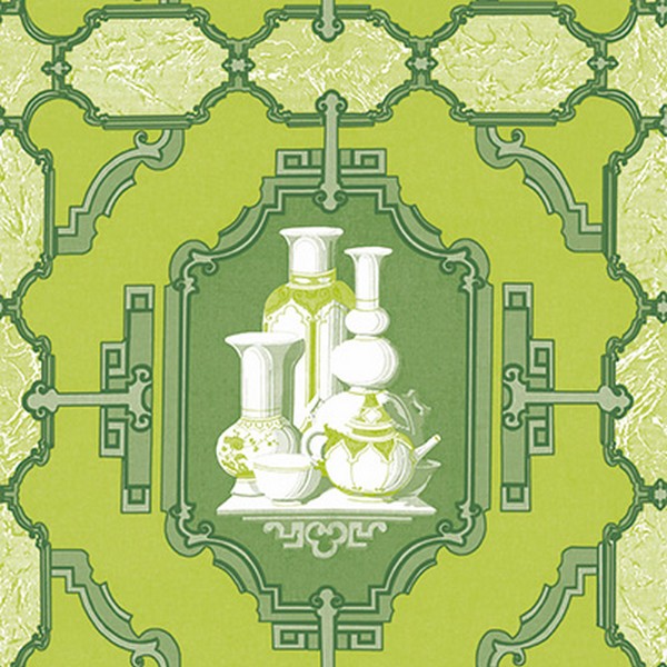 | Kravet Wallcoverings Gaston Libreria lattice/scrollwork Novelty Print Pretrimmed green And Chartreuse Wallpaper Priced and sold by the roll of 11 Yards Up the bolt |