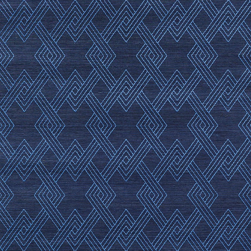 Schumacher Wallpaper Hix Embroidered Sisal Blue
