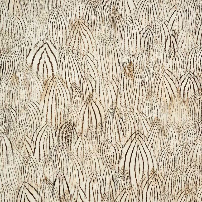 | Schumacher Plume Collection - Natural feathers hand applied to wall panels measuring 38 inches wide by 3.3 yards. |