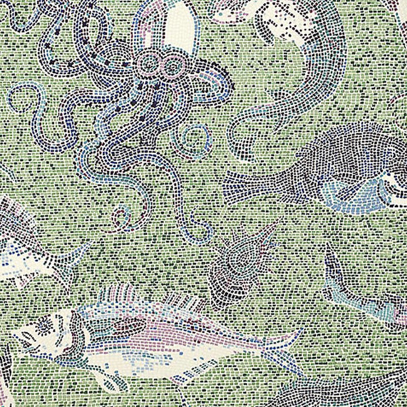 | LARGE Scale MEDIUM BLUE|MEDIUM GREEN / JADE 5 YARDS TO A ROLL Scalamandre Novelty Prints Nautical Animals |