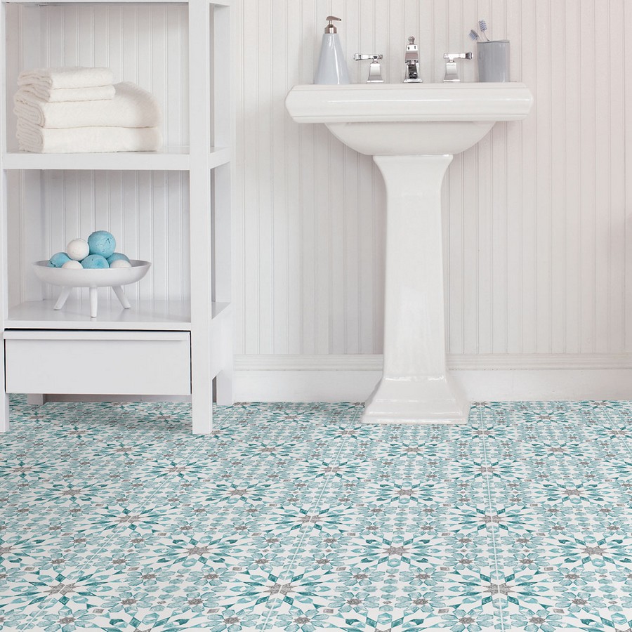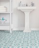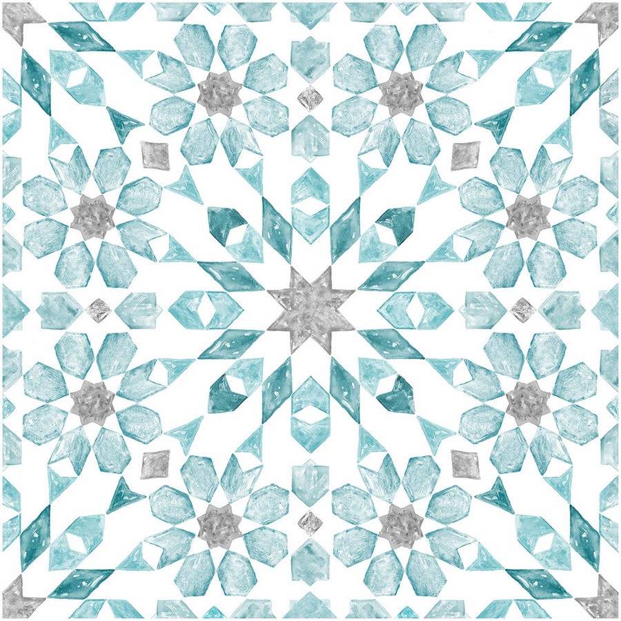 | Add a splash of color and a global flair to your floors with these peel and stick tiles. Its aqua, grey and teal kaleidoscope design looks hand painted. Radiance Peel & Stick Floor Tiles Peel and Stick Tiles contains 10 pieces on 10 sheets that measure 12 x 12 inches. Repeat: No Repeat FloorPops Peel & Stick Tiles Floor Tiles # of Pieces: 10 Kitchen & Bath Brick, Wood, & Stone Global |