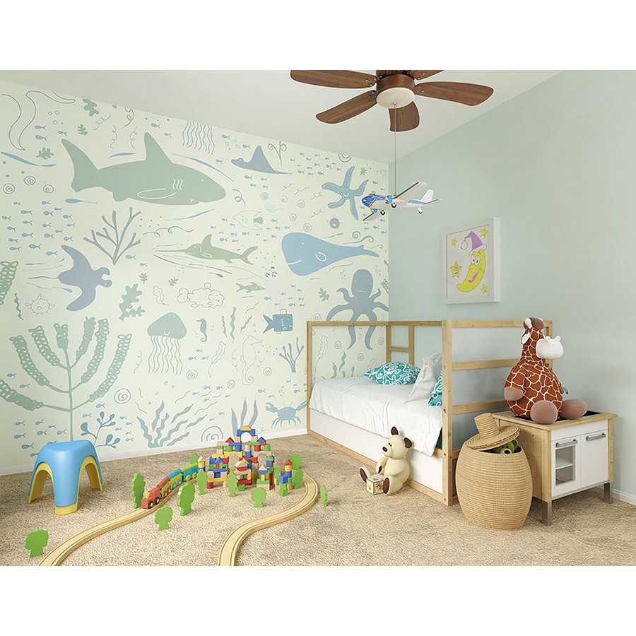 | With charming whales, sharks and curious octopi, this delightful mural paints a sweet seascape. Light green, blue and cream shades emphasize its gentle energy. Underwater Adventures Wall Mural comes on 6 panels. Measures 9ft 10in x 7ft 10in when assembled Repeat: No Repeat ohpopsi Wall Murals Wall Murals # of Pieces: 6 Kids Fish Ocean Wall Murals And Wall Stickers Boys Wallpaper |