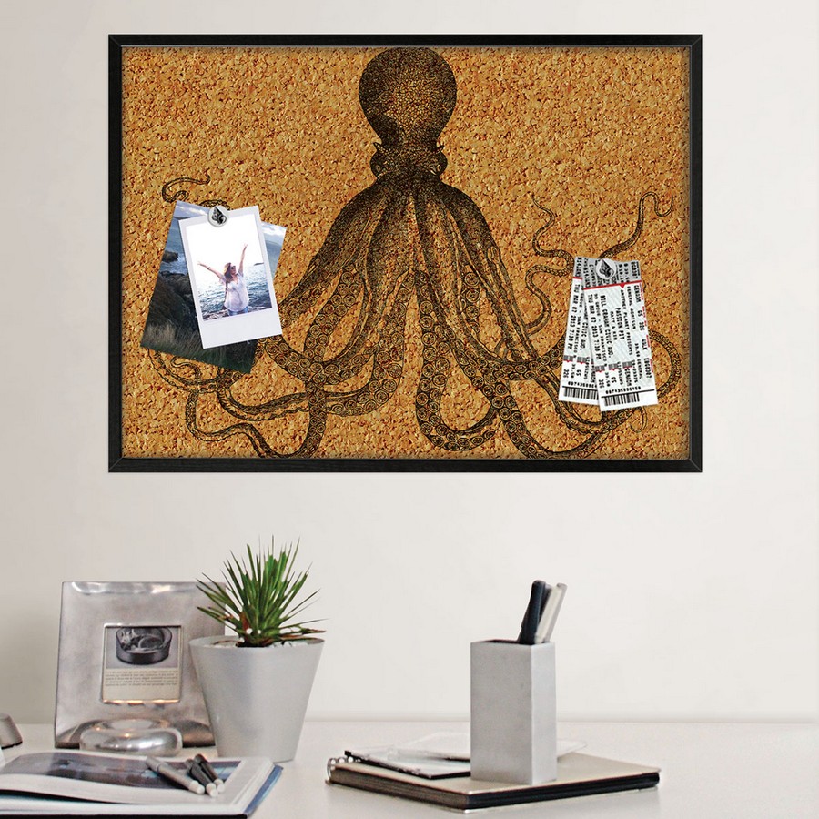 | Grab organization by the tentacle with this trendy board. Its thick black frame and antique octopus print will add a coastal hip touch to photos and lists. Measures 17-in long x 23.5-in wide when assembled. Repeat: No Repeat WallPops Accessories 3D Wall Art # of Pieces: 1 Coastal Novelty Animals Nautical |