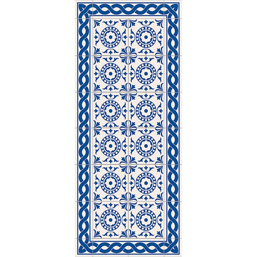 With brilliant blue and crisp white shades, this mat perfect for adding a pop of color to floors. Place this mat in the kitchen, bathroom or entryway for a global hip look. Tile Carpet Vinyl Floor Runner contains 1 piece on 1 sheet that measures 19.7 x 47.2 inches.