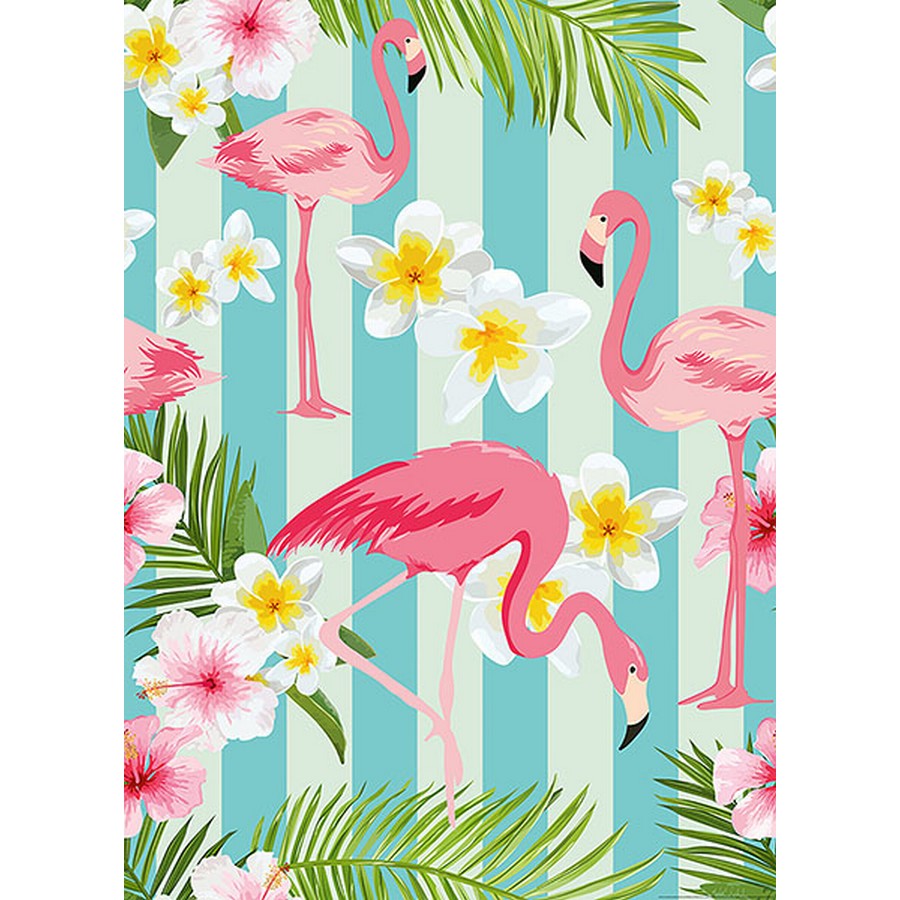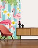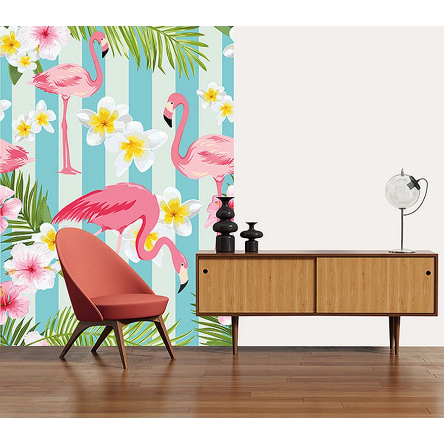 | vivid pink flamingos stand out against a blue and light green striped background featuring green fronds and tropical flowers. Printed on non woven paper and measures 8-ft 3-in high and 6-ft wide when assembled. Flamingos Wall Mural comes on 2 panels. Paste is included. Repeat: Y Ideal decor Wall Murals Wall Murals # of Pieces: 2 Kids Birds Birds Wall Murals And Wall Stickers |