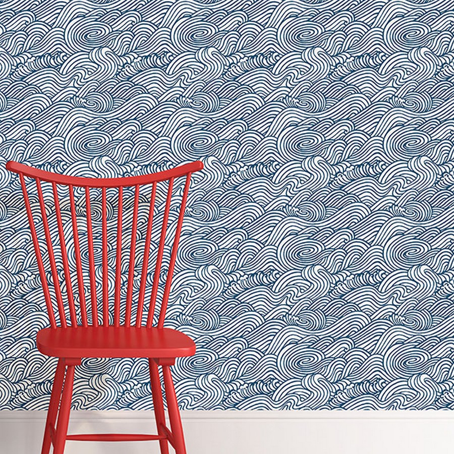 | With a large scale wave design, this Peel & Stick Wallpaper will add a soothing splash to rooms. Blue and white shades meld to make an ocean inspired print with a current edge. Navy Saybrook Peel & Stick Wallpaper comes on one roll that measures 20.5 inches wide by 18 feet long. Repeat: 10.5 NuWallpaper Peel & Stick Wallpaper Peel & Stick Wallpaper # of Pieces: 1 current Novelty Ocean |