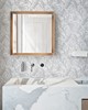 | With metallic platinum shining and a crisp white backdrop, this botanical design has a fanciful feel. Large-scale leaves make up this nature-inspired design that is perfect for any styled home. Balboa is an unpasted, non-woven wallpaper. Repeat: 21.1 Double Roll Coverage: About 56.4 square feet Paste: Unpasted Material: Non Woven Washability: Washable Strippable Glam |