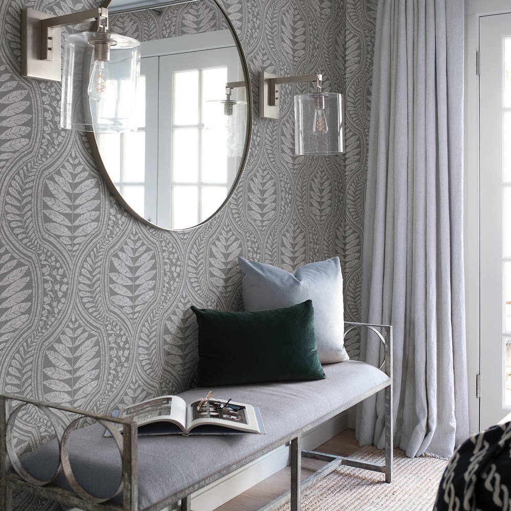 | Bohemian mixed with Scandinavian flair, this floral wallpaper features a charming ogee print amidst its leaf design. The grey and white color color scheme lends a calming ambiance. Juno is an unpasted, non-woven wallpaper. Repeat: 20.8 Double Roll Coverage: About 56.4 square feet Paste: Unpasted Material: Non Woven Washability: Washable Strippable Scandinavian |