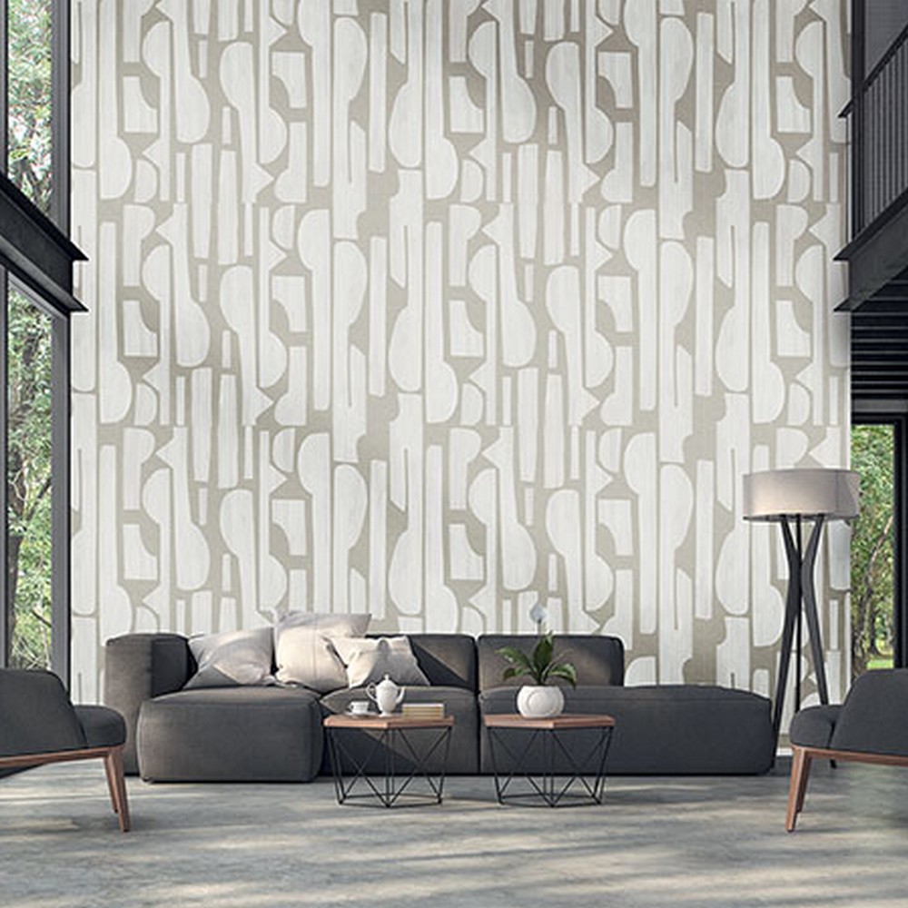 | This modern mural stretches and plays with the shape of letters. Blocked in white and painted in eye-catching, vertical strokes, the abstracted typography is layered against a taupe faux linen backdrop for an added element of implied texture. White Linen Tapestry Wall Mural comes on 4 panels and measures 9-ft 10-in by 9-ft 10-in when assembled. Brand: Eijffinger Match: NA Double Roll Coverage: 4 panels - 9 ft. 10 in. x 9 ft. 10 in. assembled Paste: Unpasted Strippable current Graphics Graphics |