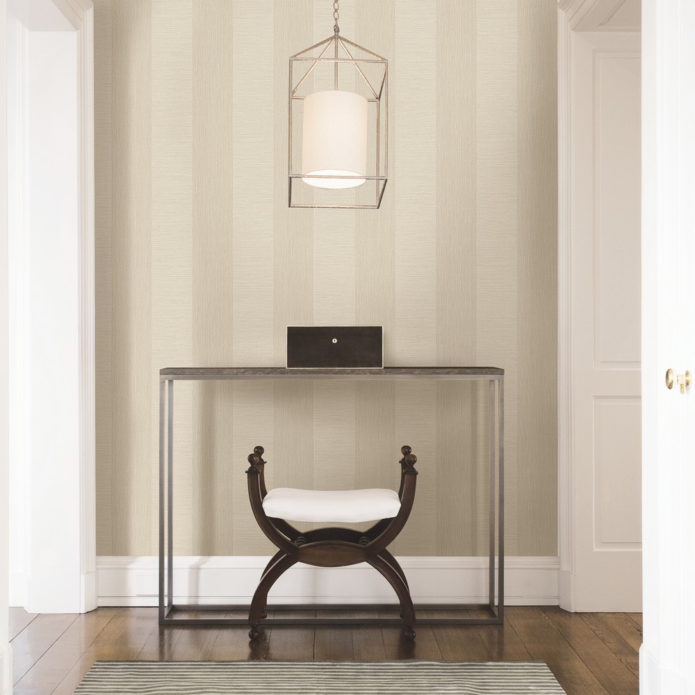| Effortlessly sophisticated, this horizontal stripe wallpaper has the look of grasscloth. A color scheme of neutral and champagne shades lends to its enduring style. Intrepid is an unpasted, non woven wallpaper. Brand: A-Street Prints Match: Random Double Roll Coverage: About 56.4 square feet Paste: Unpasted Strippable Transitional Stripes Striped |